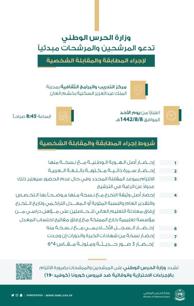 3. الالتزام بموعد المقابلة الشخصية المحدد، وعدم الحضور سيعتبر عدولا عن الرغبة في الترشيح.