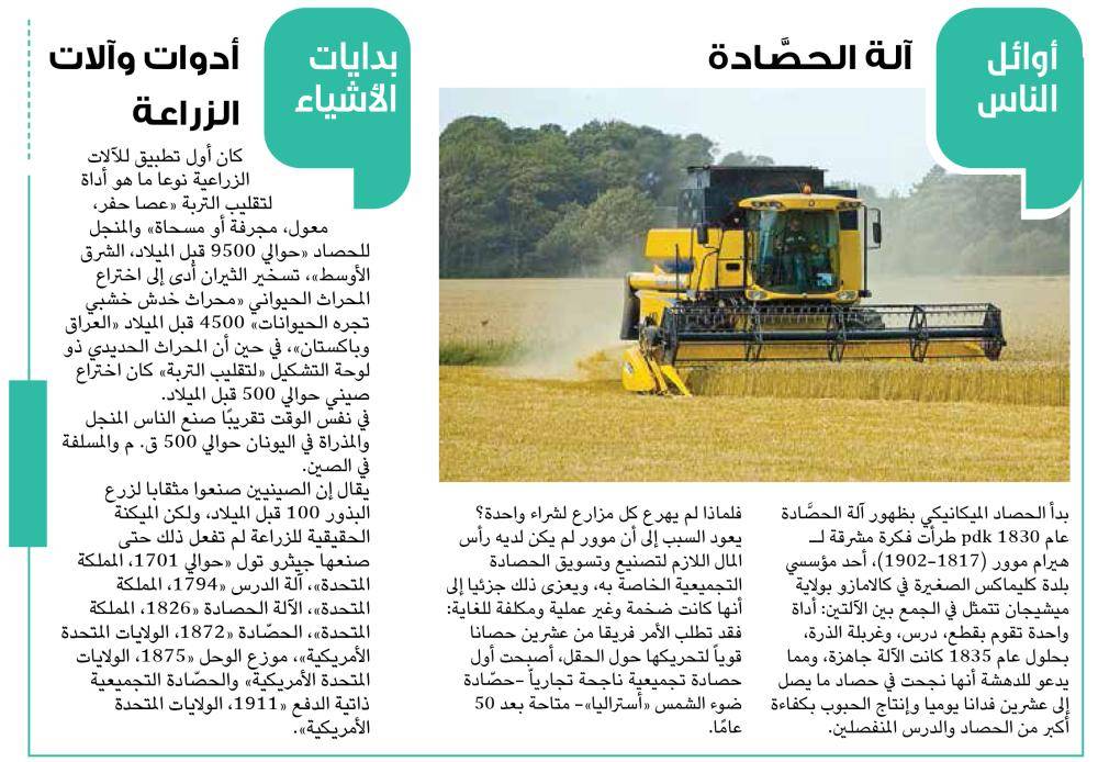 بدأ الحصاد الميكانيكي بظهور آلة الحصَّادة في عام 1830 طرأت فكرة مشرقة لـ هيرام موور (1817-1902)، أحد مؤسسي بلدة كليماكس الصغيرة في مقاطعة كالامازو بولاية ميشيغان تتمثل في الجمع بين الآلتين: أداة واحدة تقوم بقطع، درس، وغربلة الذرة، بحلول عام 1835 كانت الآلة جاهزة، ومما يدعو للدهشة أنها نجحت في حصاد ما يصل إلى عشرين فدانًا يوميا وإنتاج الحبوب بكفاءة أكبر من الحصاد والدرس المنفصلين. فلماذا لم يهرع كل مزارع لشراء واحدة؟ يعود السبب في ذلك إلى أن موور لم يكن لديه رأس المال اللازم لتصنيع وتسويق الحصادة التجميعية الخاصة به، ويعزى ذلك جزئيًا إلى أنها كانت ضخمة وغير عملية ومكلفة للغاية: فقد تطلب الأمر فريق من عشرين حصانًا قوياً لتحريكها حول الحقل، أصبحت أول حصادة تجميعية ناجحة تجارياّ -حصّادة ضوء الشمس «أستراليا»- متاحة بعد خمسين عامًا. بدايات الأشياء