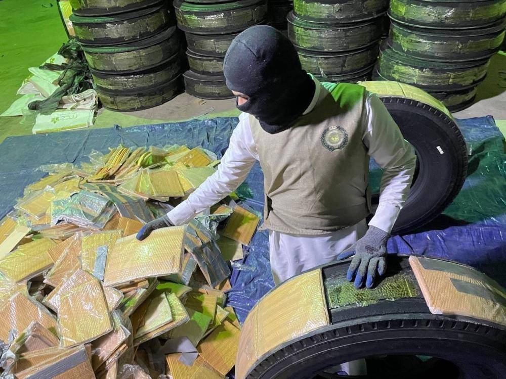 صرح المتحدث الرسمي للمديرية العامة لمكافحة المخدرات النقيب محمد النجيدي، بأن المتابعة الأمنية الاستباقية لنشاطات الشبكات الإجرامية، التي تمتهن تهريب المواد المخدرة إلى المملكة، أسفرت عن كشف مخطط لتهريب كمية كبيرة من أقراص الإمفيتامين المخدرة إلى المملكة، حيث تمت متابعتها وضبطها، بالتنسيق مع الهيئة العامة للجمارك، بميناء جدة الإسلامي، مخفية داخل شحنة إطارات، وبلغ إجماليها (10,948,000) قرص إمفيتامين.