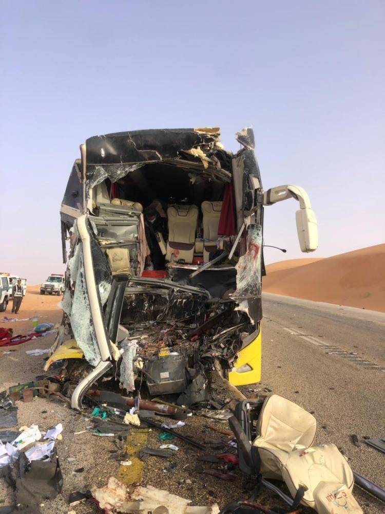 وأفاد المتحدث الرسمي للهلال الأحمر بنجران سعود آل دويس، بأنه تلقت غرفة العمليات بالهلال الأحمر بنجران بلاغا الساعة 3:26 فجراً، بوجود حادث تصادم باص نقل جماعي علي طريق سلطانة شرورة وعلى متنه 28 راكبا، مع سيارة نقل عفش، وعلى الفور تم توجيه 11 فرقة إسعافية متكاملة، من الهلال الأحمر وفرقتين إسعافيتين من الصحة.