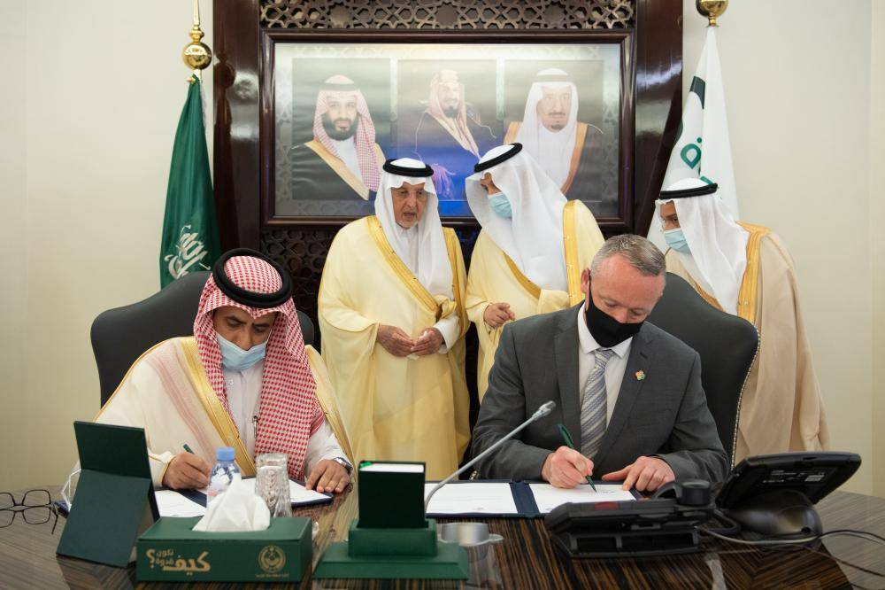 كما شهد أمير المنطقة أيضا توقيع مذكرة تفاهم بين شركة المياه الوطنية، وجامعة الملك عبد الله للعلوم والتقنية «كاوست»، للتعاون ونقل المعرفة في برامج بحثية تشمل الموضوعات ذات الاهتمام المشترك بين الطرفين في مجالات تقنيات المعالجة الصحية، ومثل شركة المياه الوطنية في مراسم توقيع مذكرة التفاهم نائب الرئيس للمشاريع والخدمات الفنية المهندس منصور بن محمد أبوثنين، فيما مثل جامعة الملك عبدالله للعلوم والتقنية البروفيسور ماثيو فرانسيس ماكابي.