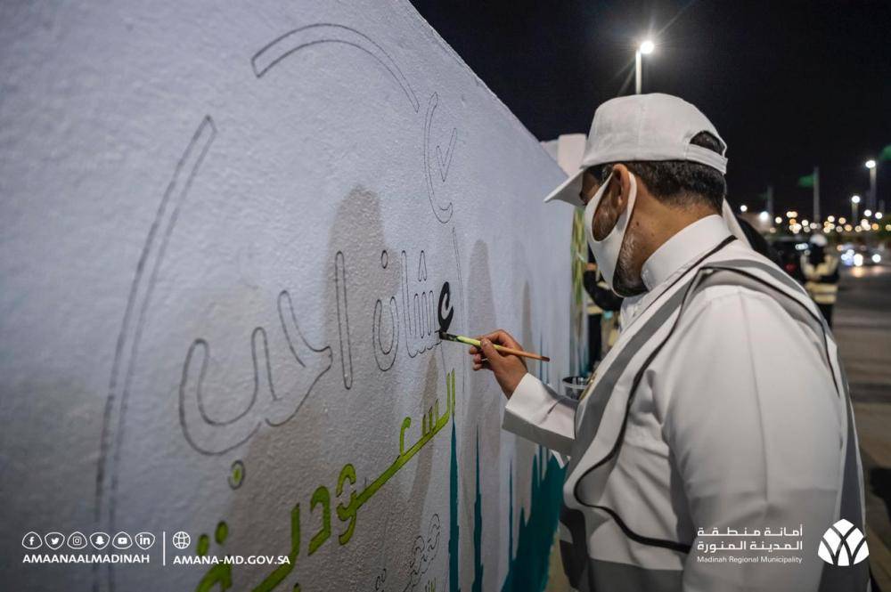 وشارك الأمين مع فريق أشبال الأمانة التطوعي المكون من 50 طفل وطفلة في تلوين الشعارات، إلى جانب مشاركته في الجدارية التي رسمت بأنامل مجموعة من طالبات كلية التربية الفنية تحت إشراف عدد من المبدعين.