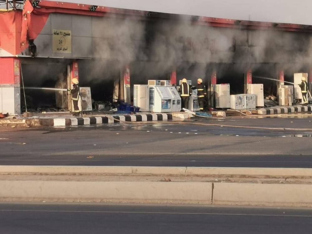 وباشرت فرق الدفاع المدني إخماد الحريق والسيطرة على عدم انتشاره في خزانات الوقود والمحلات المجاورة للسوق، كما قامت فرق الدوريات الأمنية بالشرطة والمرور بضبط حركة سير المركبات وإبعاد المواطنين والمقيمين عن مسرح الحادث حفاظا على سلامتهم.