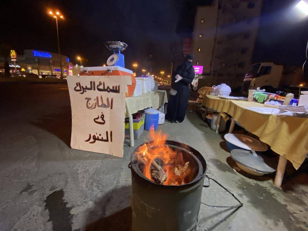 وذكرت نورة أنها مهنة صعبة وليست سهلة، ولكن الحاجة تدفعها إلى خوض غمار هذه التجربة، حيث تستيقظ في تمام الثالثة صباحا وتستقل سيارتها مع سائقها الخاص، وتتجه يوميا إلى حراج الأسماك بالبرك عبر عقبة ضلع لشراء الأسماك، ولتوفر ما يصلها من طلبيات خاصة لزبائنها، ثم تعود لمنزلها لتستريح ثم تقوم بتحميل بضاعتها وتذهب لموقعها في البيع في تمام الرابعة عصرا، حيث تقوم بتجهيز «الميفا» لطلبات الزبائن، فالبعض يطلب طهوه مباشرة هذا إلى جانب البيع.