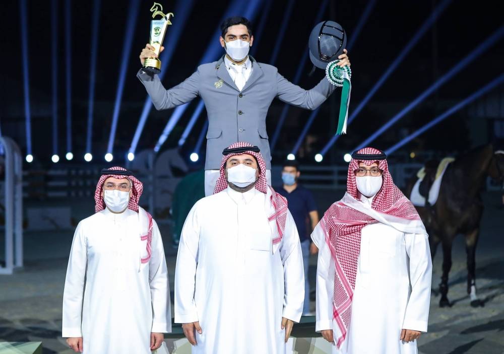 توج نائب رئيس اللجنة الأولمبية الأمير فهد بن جلوي، ورئيس الاتحاد السعودي للفروسية الأمير عبدالله بن فهد مدير الإدارة الإستراتيجية في هيئة تطوير بوابة الدرعية طلال كنسارة، الفائزين بالمراكز الأولى في منافسات نهائي دوري هيئة تطوير بوابة الدرعية لقفز الحواجز.«الرياض: الوطن»