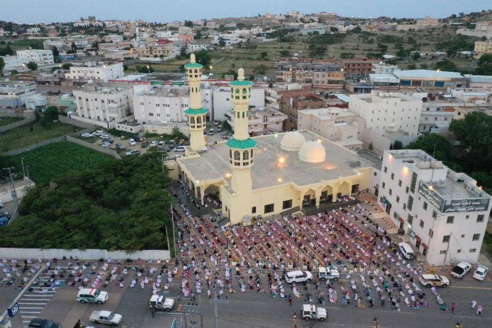 التقطت كاميرا "الوطن" صورا جميلة للحشود قبل و بعد الانتهاء من الصلاة حيث أظهرت الصور الجوية منظر الجامع والأعداد الكبيرة للمصلين وهي تحيط بالجامع في شكل منظم يظهر الالتزام التام بالاجراءات الاحترازية ويرتاد المصلون الجامع منذ أكثر من خمسين عاما وتقام فيه صلاة العيد بحسب الحاجة منذ عامين وقبل ذلك بحسب الأحوال الجوية.