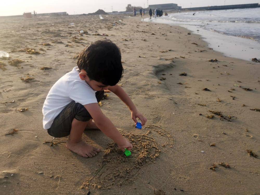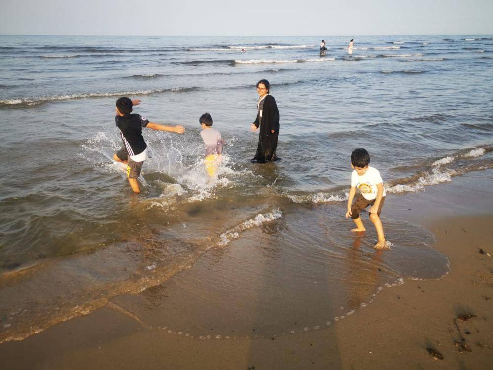 جذب كورنيش شاطئ الشقيق شمال منطقة جازان، مع إجازة عيد الفطر السعيد، العديد من الزوار ممن يفضلون البحر لقضاء أوقات ممتعة فيه وممارسة السباحة والاستمتاع باللعب والجلوس على رماله الناعمة والمسطحات الخضراء. (تصوير: محمد الحسين)