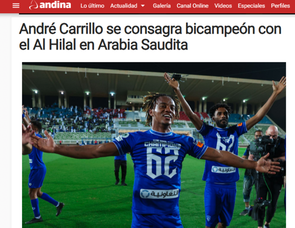 تغنت صحيفة «andina» البيروفية بما حققه الدولي أندريه كاريلو مع الهلال، بعدما حقق لقبه الخامس بقميص الزعيم الهلال، وأثنت شبكة «espn»: على أداء اللاعب الذي يعد أحد أفضل هدافي الفريق، واللاعبين المؤثرين في الفريق كمجموعة، ومساهمته في 13 هدفا مابين التسجيل والتمريرات الحاسمة.