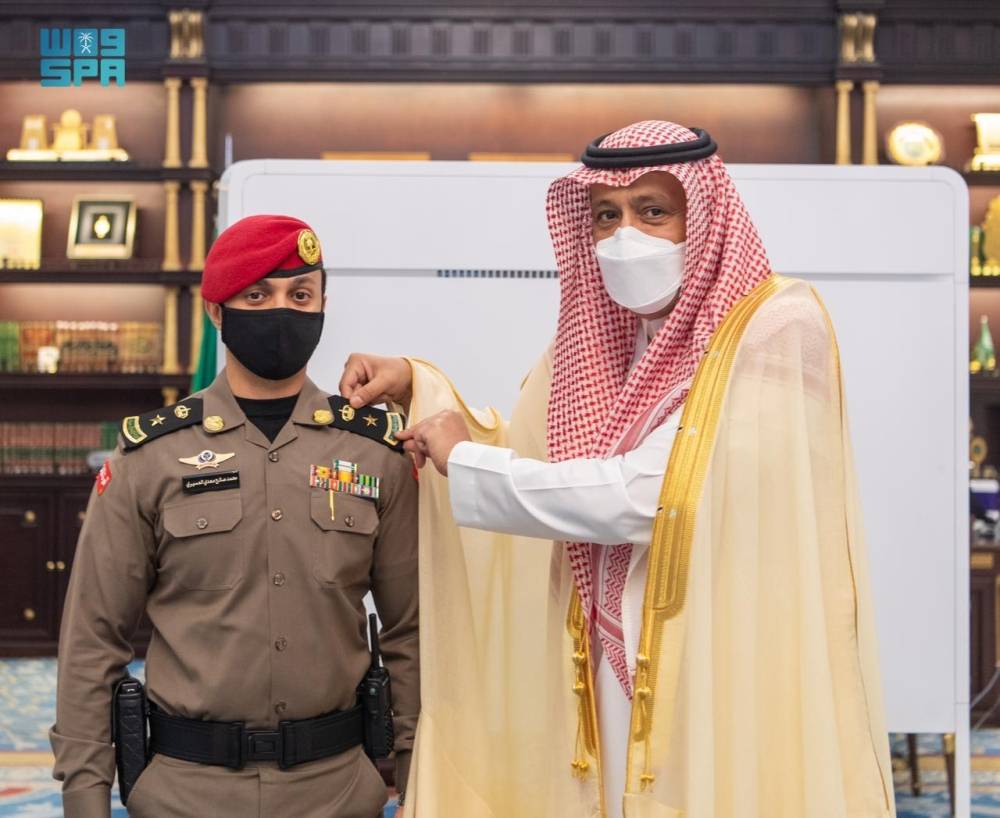قلّد أمير منطقة الباحة، الأمير الدكتور حسام بن سعود، الضابط المرافق له المقدم محمد معدي العسيري رتبته الجديدة. وهنأه بمناسبة الترقية، سائلًا الله له التوفيق.