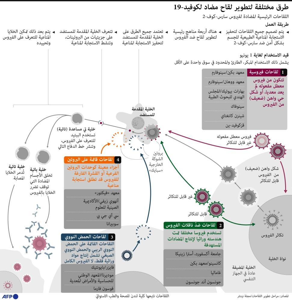 طرق مختلفة لتطوير لقاح مضاد لكوفيد - 19