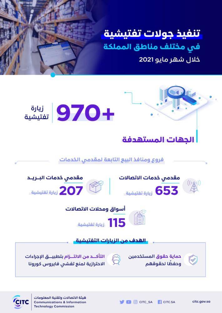 وأوضحت الهيئة أن الجولات التفتيشية شملت العديد من منافذ البيع وفروع مقدمي الخدمات في عدد من مناطق المملكة، وذلك في إطار عملها على تعزيز آليات حماية المستخدمين في قطاعي الاتصالات والبريد، بالإضافة إلى مواكبة الجهود الحكومية المشتركة للحد من انتشار فيروس كورونا، والتأكيد على أهمية رفع مستوى الالتزام بالتدابير الاحترازية في كافة الفروع ومنافذ البيع التابعة لمقدمي الخدمات، كما أكدت الهيئة على استمرارية الجولات التفتيشية من قبل فرقها الرقابية، واتخاذ الإجراءات التصحيحية اللازمة تجاه كافة المخالفات المرصودة.