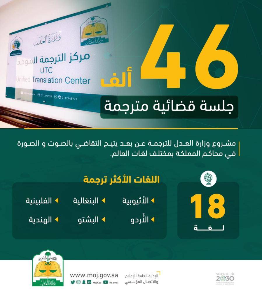 وأوضحت الوزارة ، أن المركز يمكّن غير الناطقين باللغة العربية من متابعة قضاياهم، من خلال عدة مترجمين يتحدثون أكثر من 18 لغة.