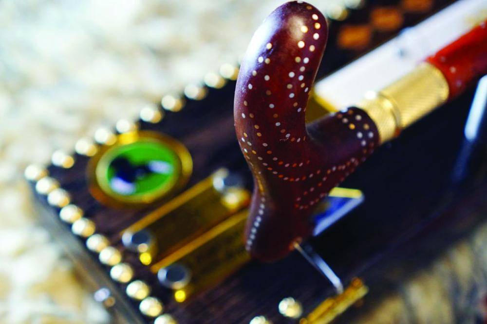 وعن أبرز المعدات المستخدمة في معمله المنزلي، أوضح أنها مخرطة الخشب لتصنيع العكازات والأعمال الخشبية، ومخرطة المعادن لصناعة الإكسسوارات، وصياغة الفضة والمعادن وتلحيمها وتركيبها ومكينة صقل الأحجار الكريمة وتشكيلها، وكذلك يوجد أدوات القياس بالليزر، ومكينة ذات تقنية عالية تعمل بالكمبيوتر لحفر الأخشاب والمعادن.