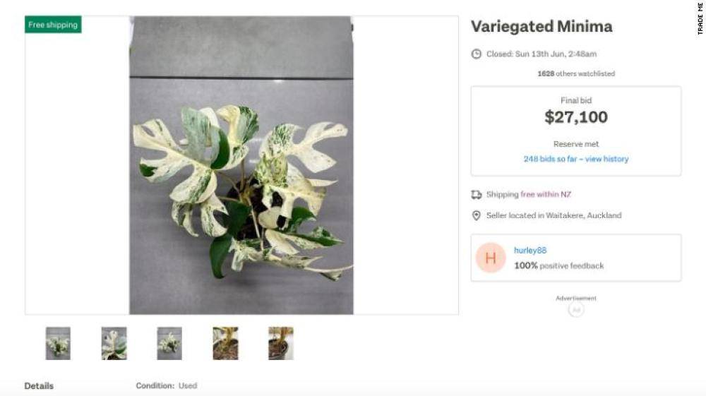 وبحسب موقع سي إن إن، فإن النبتة التي تسمى «رافيدوفورا تتراسبرما» تضم تسع أوراق، تم بيعها في دار مزادات «تريد مي»، بنيوزيلاندا بسعر 19297 دولارا أمريكيا.