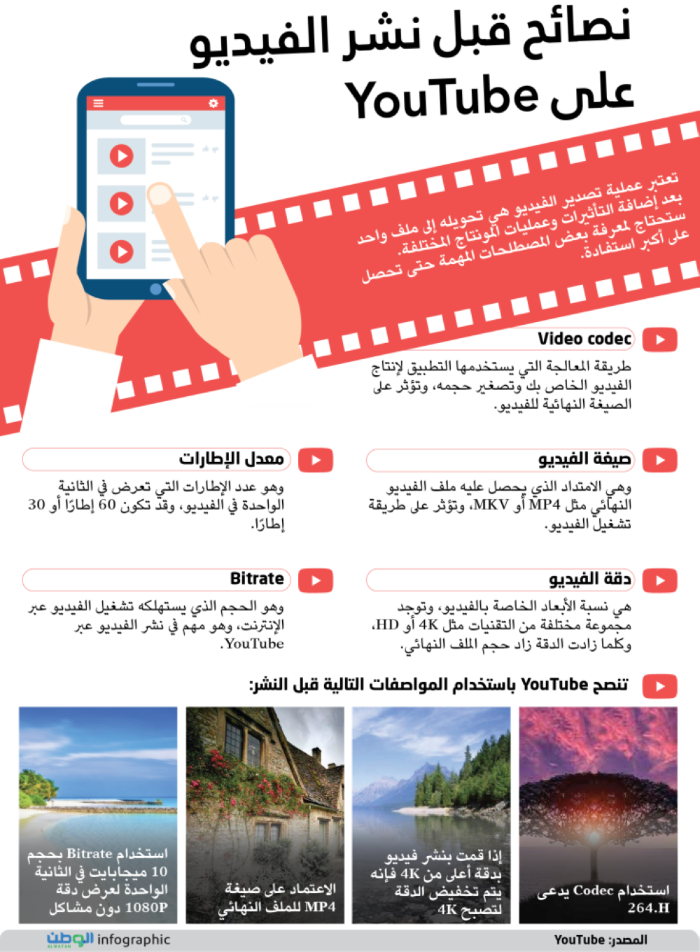 تنصح YouTube باستخدام المواصفات التالية قبل النشر: