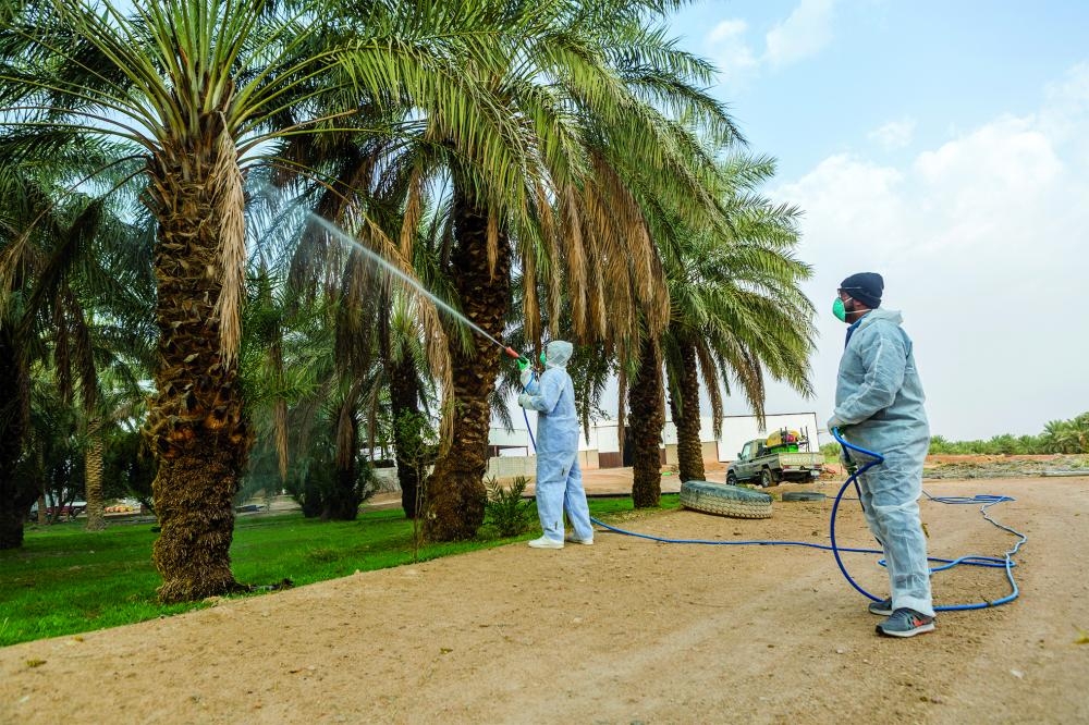 وأضاف الغنام أن هناك حشرة أخرى تدعى الغبير وسميت بالغبير لأن قنى التمر يصبح عليه مثل الغبار، وهي حشرة مثل العنكبوت تضع لعاب على طلع النخيل أو قنو النخل وتعمل شبكة مثل العنكبوت وتصيب القشر الخارجي للتمر ويصبح مثل الخشب ولا جدوى من العلاج وقت الإصابة لكن لابد من الوقاية من الغبير برش المبيدات الحشرية، كذلك هناك العناكب التي تصيب أوراق التين والفاكهة وهي أيضًا تحتاج لمبيدات حشرية للقضاء عليها ويفضل رش المبيدات وقت الأزهار وبعد الإثمار.
