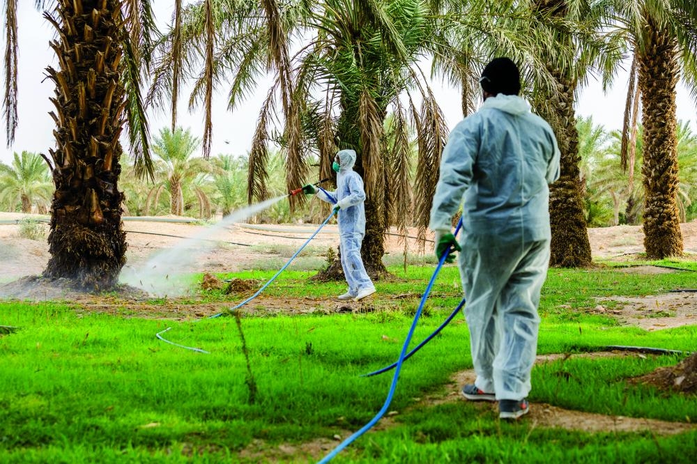 ولعل أبرز تلك الأعمال، هي مواجهة سوسة النخيل الحمراء والتي تعرف بأنها حشرة وافدة تم اكتشافها في المنطقة الشرقية عام 1407 وسرعان ما انتشرت في جميع مناطق زراعة النخيل في المملكة محدثة أضرار وخسائر جسيمة في محاصيل التمور، وهي حشرة كاملة التطور أي أن حياتها تبدأ ببيضة ثم يرقة ثم عذراء ثم حشرة كاملة يتراوح حجمها من 3 - 4 سم ولونها بني محمر لها خرطوم طويل حيث استطاع فرع الوزارة بالقصيم حسب التقرير السنوي الصادر لعام 2020 أن يخفض نسبة الإصابة وذلك من خلال البرامج التدريبية المقدمة التي تزيد الوعي لدى المزارعين في طرق الوقاية من هذه السوسة حيث تم فحص 18116 مزرعة وبلغ إجمالي النخيل المفحوص 20797372 نخلة وتبين إصابة 179742نخلة وتمت معالجة 141643 نخلة .