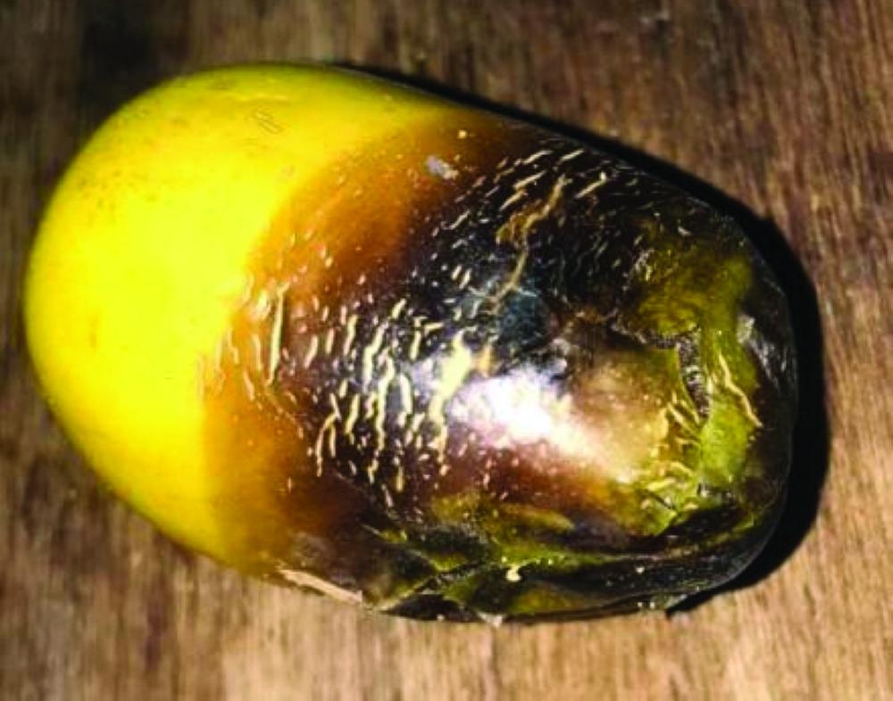 وأبان الحليبي لـ«الوطن» أمس، أن الإصابة الجديدة، بحاجة إلى المزيد من التحاليل المخبرية لتحديد السبب وراء ذلك، داعيًا الجامعات والمراكز البحثية المتخصصة في أبحاث النخيل والتمور للوقوف على الإصابة، وسرعة العمل على إيجاد حلول لوقف الإصابة، والقضاء عليها، وإرشاد المزارعين إلى العلاج، لافتًا إلى أن هذه الإصابة، قد تكون «متحورة» عن إصابة أخرى من الأمراض التي تتعرض لها أشجار ومحصول النخيل.