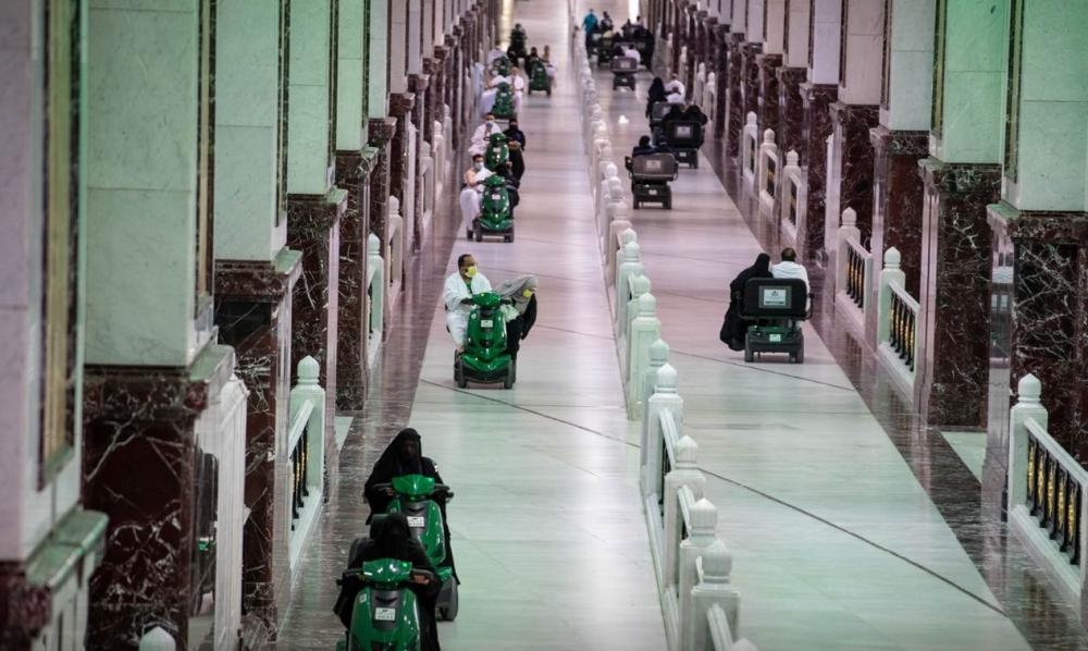 وذكر أن عمليات التعقيم تتم على مدار الساعة، ويجري حَالِيًّا التأكد من جودة العمل في العربات، ومراقبة حركتها، والتزامها بالمواقع المخصصة لها. وتتم عملية الحجز للعربات الكهربائية عبر تطبيق «تنقل» ذَاتِيًّا، لتقليل التزاحم عند نقاط البيع والتسليم، مما يحقق التباعد الآمن بين ضيوف الرحمن.