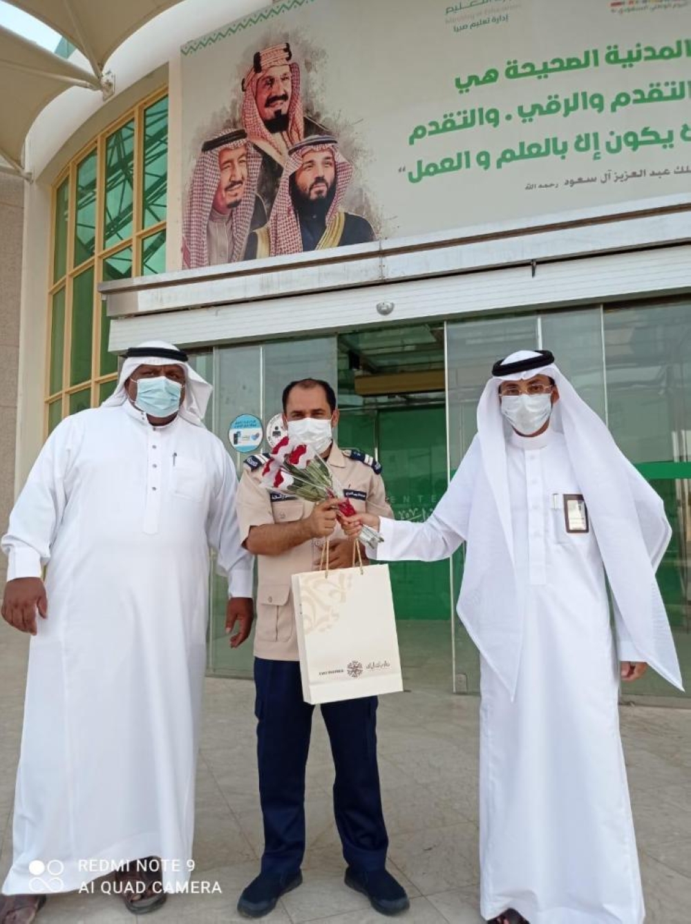 نقل فريق الأمن والسلامة بإدارة تعليم صبيا التهنئة نيابة عن جميع منسوبي ومنسوبات الإدارة لحراس الأمن بمناسبة حلول عيد الأضحى، وذلك من خلال تقديم الورود والهدايا لهم؛ تقديراً لجهودهم المتميزة خلال فترة الإجازة والعيد.