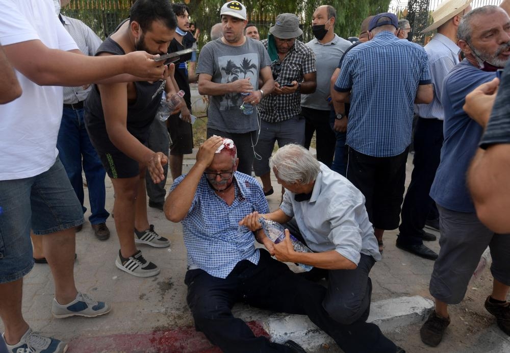 ومنع المئات من مناصري الرئيس سعيّد مؤيدي حزب النهضة من الاقتراب من زعيمهم الغنوشي الموجود داخل سيارة أمام البرلمان وتبادل الطرفان الرشق بالحجارة والعبوات، وفق ما أفاد صحافيون في فرانس برس.