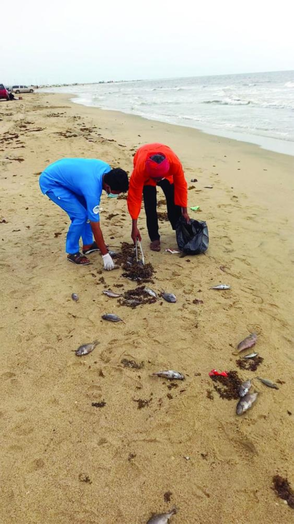 وأرجع مصدر بيئي وجود الأسماك النافقة إلى ظاهرة يطلق عليها المد الأحمر، مشيرا إلى أنها ظاهرة طبيعية تحدث في مختلف بحار العالم وتتكون بسبب الكائنات الدقيقة التي توجد بشكل دائم وبأعداد قليلة في حالة سكون بقاع البحر، وقد تظل في هذه الحالة لسنوات، وتظهر حينما تتوفر لها الظروف الملائمة، وأضاف المصدر لـ«الوطن» أن تلك الكائنات عندما تتكاثر بأعداد كبيرة تستهلك كميات الأكسجين المذاب في الماء مما يسبب نفوق الأسماك نتيجة الاختناق، وبخاصة في مناطق الخيران الطبيعية والاصطناعية مثل الموانئ التي تقل بها حركة المياه والأمواج، علما بأن النقوق بدأ ينحصر ويتلاشى. ورصدت «الوطن»، أمس، نفوق الأسماك على الشاطئ، وتضافر جهود جهات حكومية عدة للوقوف على أسباب الحدث، ومنها الثروة السمكية التي أخذت عينات من الأسماك النافقة.