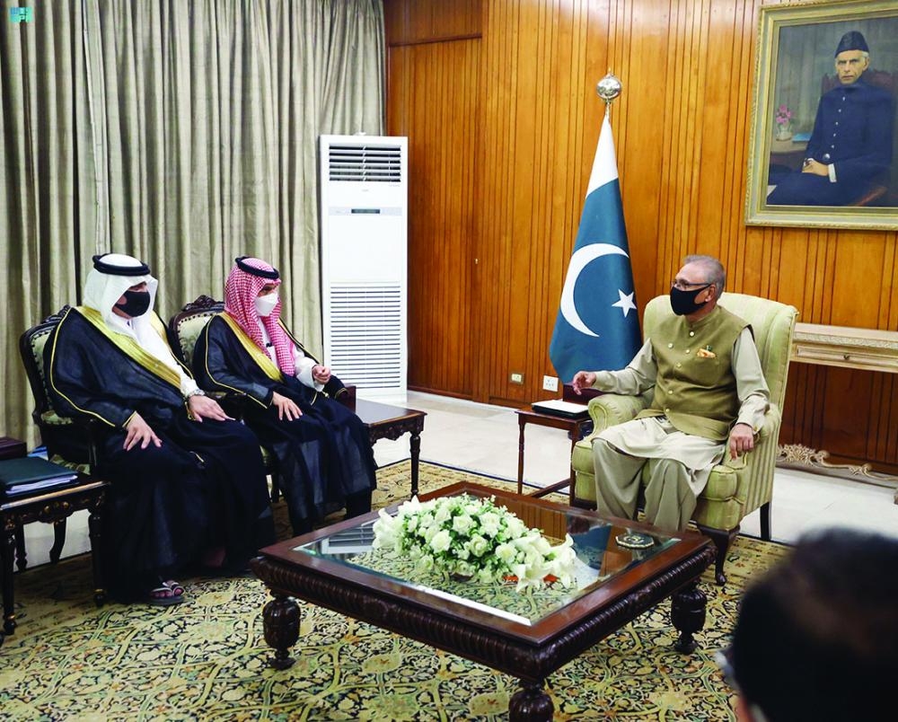 واستقبل الرئيس الباكستاني، عارف علوي، في القصر الرئاسي بالعاصمة إسلام أباد أمس، وزير الخارجية السعودي الذي نقل، خلال الاستقبال، تحيات خادم الحرمين الشريفين، الملك سلمان بن عبدالعزيز آل سعود، وولي العهد نائب رئيس مجلس الوزراء وزير الدفاع، الأمير محمد بن سلمان، إلى الرئيس الباكستاني، ولحكومة وشعب باكستان، بينما حمله الرئيس الباكستاني تحياته وتقديره لخادم الحرمين الشريفين، وولي العهد، وحكومة وشعب المملكة العربية السعودية.