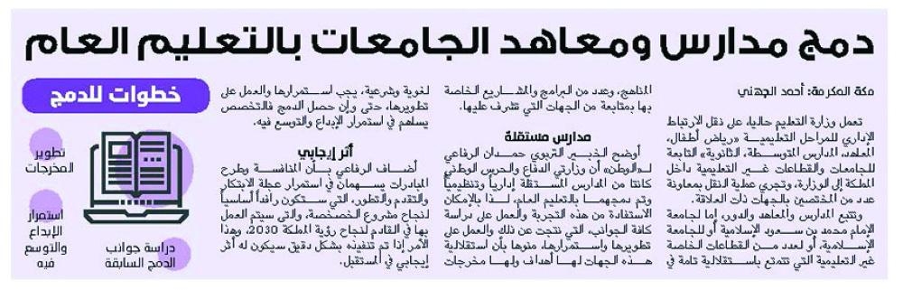 يأتي القرار تأكيداً لما نشرته «الوطن» بتاريخ 14 -5-1442، والذي ينص على دمج مدارس ومعاهد الجامعات بالتعليم العام.