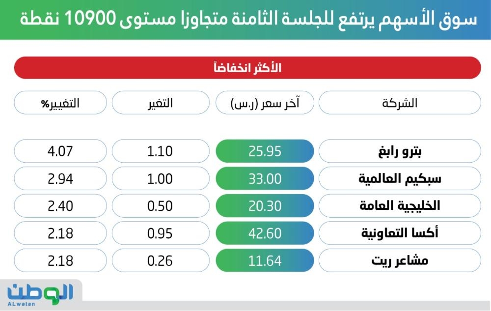 ارتفع سوق الأسهم السعودية (تداول) خلال جلسة اليوم، الأربعاء، للجلسة الثامنة على التوالي، وتجاوز مستويات الـ10900 نقطة، في ظل ارتفاع قطاعي الاتصالات والطاقة. وأغلق المؤشر العام للسوق (تاسي) مرتفعا 0.16%، بمكاسب بلغت 17.06 نقطة، صعد بها إلى مستوى 10933.73 نقطة.