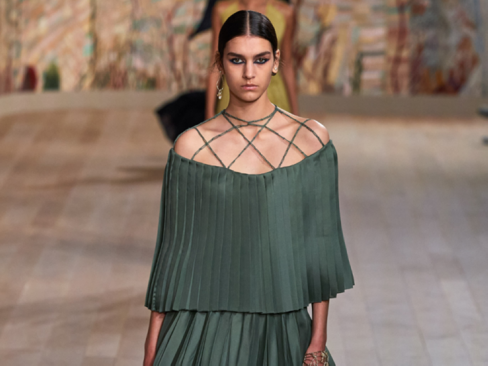 في عرض الأزياء الراقية لموسم خريف وشتاء 2021 للدار الفرنسية العريقة «ديور»، قرنت المصممة ماريا جراتسيا كيوري الفساتين الأنثوية بإطلالة البانك اليومية، مقدمة مجموعة واسعة من الإطلالات الفاخرة. ولكن بنظرة سريعة على المكياج، نجد أنه في عالم ما بعد الجائحة الصحية تكون أغطية الوجه هي الوضع الطبيعي الجديد، فلا شيء أكثر قوة من العيون الجريئة، التي كانت هي الرسالة التي تدعم إطلالات الجمال في عرض أزياء «ديور» الراقي لخريف وشتاء 2021.
