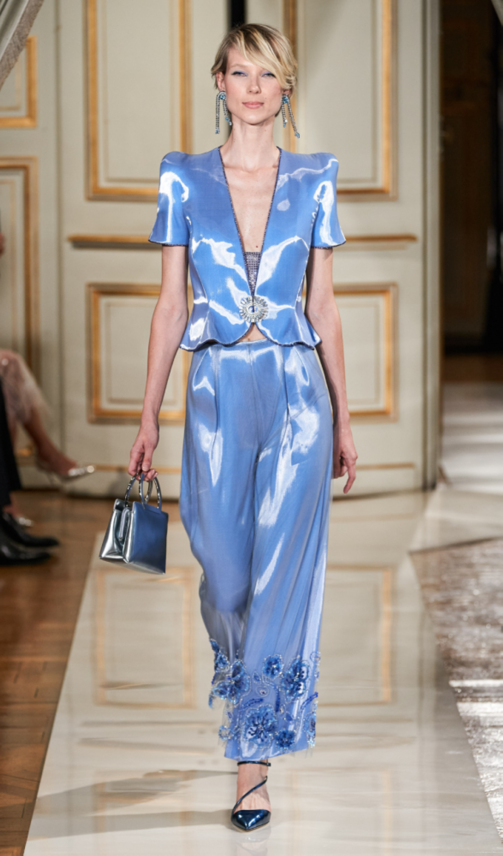 أما أرماني بريفيه، فقد تميزت أقمشته الأورجانزا الحريرية باللمعان، وكثير من الإطلالات في عرض المصمم جورجيو أرماني للأزياء الراقية لموسم خريف 2021، حيث أضاف تطريزات زهرية متلألئة ومزينة بالترتر على فساتين أنيقة مرصعة بالريش أو على سترة أرجوانية ذات حواف مطرزة، جعلت من العرض ساحة فنية مبهجة.