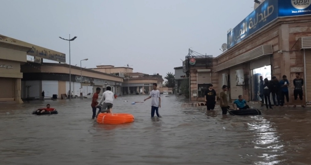 وفي أبوعريش، تحول شارع الأمير سلطان إلى بركة للسباحة، وسط مخاطر للشباب الذين حولوا أدوات كهربائية لقوارب سباحة وسط عبور المركبات. وفي الدرب تابعت الجهات الأمنية عددا من الطرق التي تضررت من تجمعات المياه.