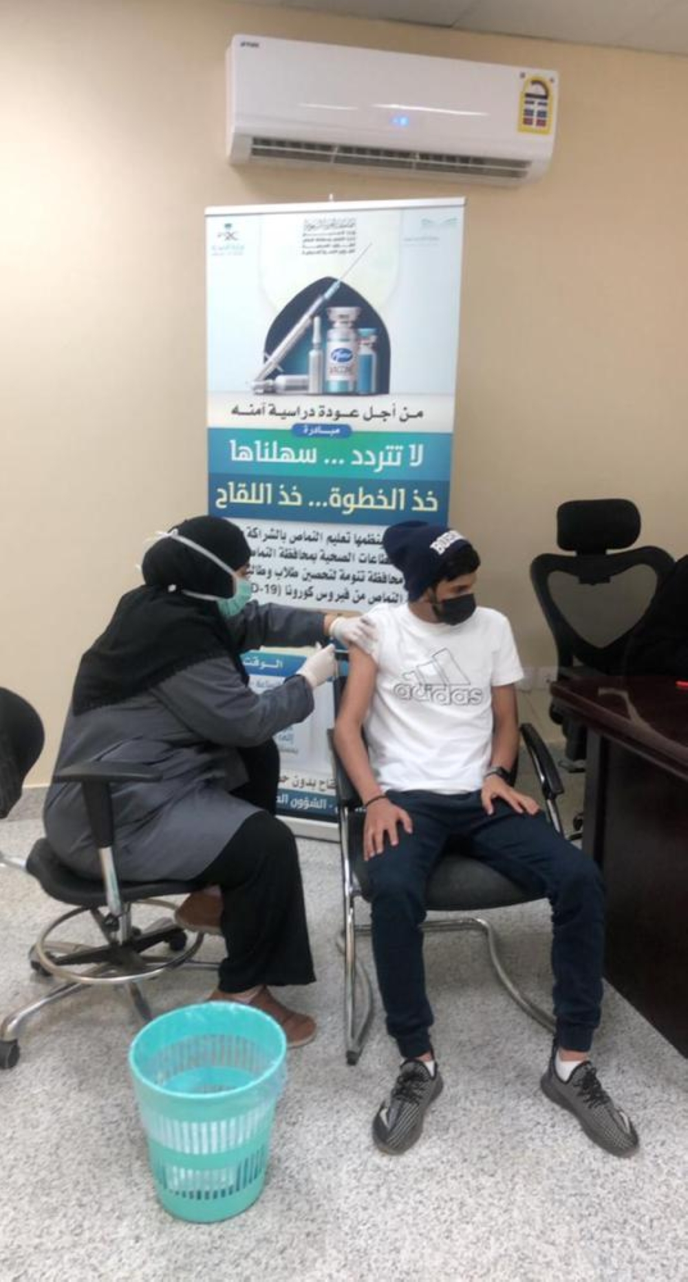 اطلقت إدارة تعليم النماص مبادرة «لا تتردد.. سهلناها» بالتعاون مع القطاعين الصحيين في النماص وتنومة، ممثلة بالشؤون الصحية المدرسية لتحصين الطلاب والطالبات للفئات العمرية من 12- 18 عاماً، لعودة مدرسية حضورية آمنة، وتم ضمن المبادرة جدولة للمدارس والقطاعات وتحديد زمن لتلقي الفئة المستهدفة للقاح قبل بداية العام الدراسي، كما تفقد مدير تعليم النماص عمر بن هجاد الغامدي مع المساعد للشؤون المدرسية عبدالله سعد الشهري مراكز اللقاحات في نشيان ومستشفى تنومة للوقوف على خطة مسارات الطلاب والطالبات لتلقي اللقاح.