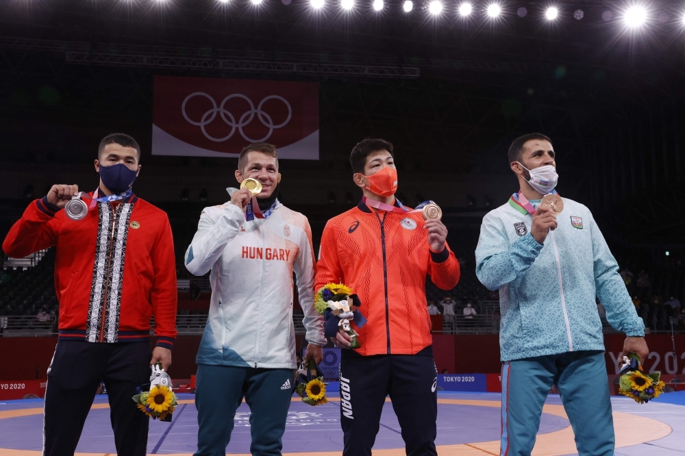 أحرز المجري تاماس لورينتس ذهبية وزن 77 كلغ في منافسات المصارعة اليونانية- الرومانية، ضمن دورة الألعاب الأولمبية المقامة في العاصمة طوكيو حتى الثامن من أغسطس، ونال القرغيزي أكزول محمودوف الفضية، وكانت البرونزية من نصيب الأذربيجاني رفيق حسينوف، والياباني شوهي يابيكو. وحصد الروسي موسى إيفلوييف ذهبية وزن 97 كلغ في منافسات المصارعة الحرة، وذهبت الفضية للأرميني أرتور أليكسانيان، وحصل على الميدالية البرونزية، الإيراني محمّد هادي سارافي، والبولندي تاديوس ميخاليك.