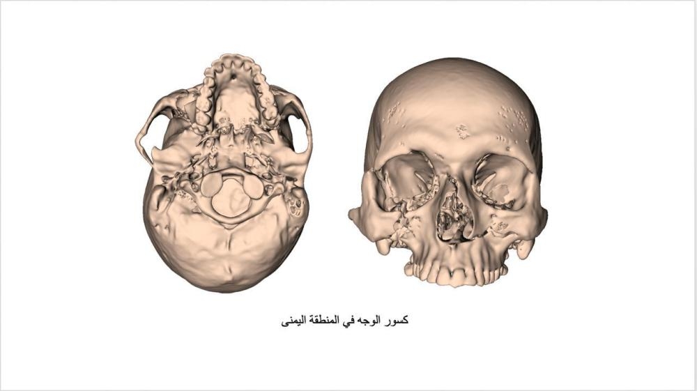 وكان المريض قد تعرض لحالة كسور مضاعفة في الفك السفلي و عظام الوجنه نتيجة إصابته بمثقاب كهربائي في الوجه.