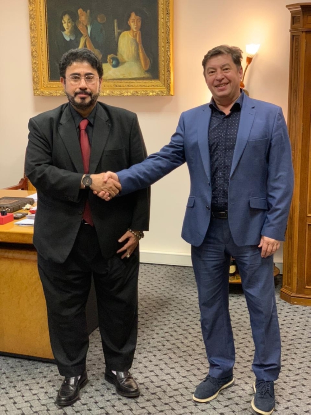 قام رئيس الاستثمار بالمركز الدولي للشراكات الإستراتيجية في المنظمة الدولية بين الحكومات ( IRIAS ) الدكتور إبراهيم الضاحي بزيارة لمقر إدارة البرلمان الروسي «الدوما» في موسكو، والتقى أيجيستوف ألكسندر أناتوليفيتش رئيس الأكاديمية البلدية الروسية ورئيس الشركات والمؤسسات والمنظمات غير الربحية في الاتحاد الروسي.