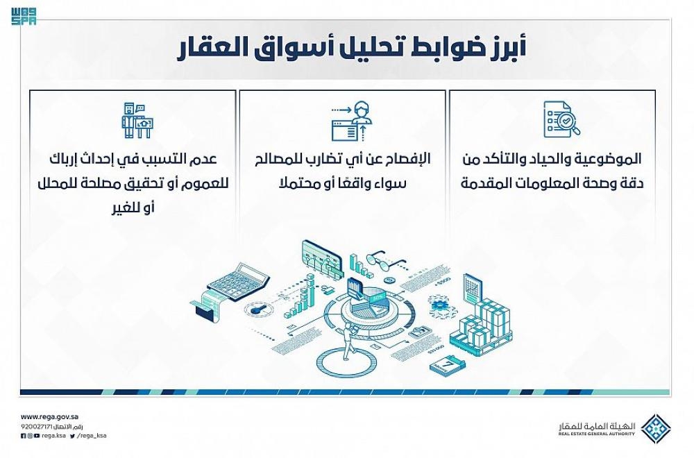 وتضمنت الضوابط التزام محلل السوق العقاري بالموضوعية والحياد، والتأكد من دقة وصحة المعلومات التي يقدمها، وعدم تضمينها أي معلومات أو بيانات مضللة أو غير متوافقة مع المعطيات والمبررات العقارية التي يؤخذ بها عند تحليل السوق العقاري، وبذل العناية اللازمة، والمعرفة النافية للجهالة، والأمانة، والحرص، والإفصاح عن أي تضارب مصالح واقع أو محتمل، كما تضمنت أنه يحظر إنتاج ما من شأنه المساس باستقرار السوق العقاري أو الإضرار به، وإحداث تأثير من شأنه التسبب في إحداث إرباك للعموم أو تحقيق مصلحة له أو للغير، كما يحظر انتهاك حقوق الملكية الفكرية.