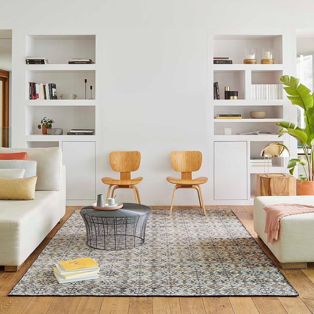 السجادة ضرورية لربط المساحة معا. في حين أن عالم الألوان والأنماط واسع، فإن العثور على لون خالص أو نقش بسيط مع نسيج غني يوفر جميع مزايا السجادة دون المخاطرة باستهلاكها بسرعة، وعند التسوق لشراء سجادة، ابحث عن: