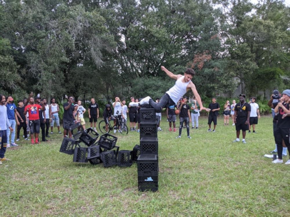 واجتياز «صناديق الحليب» أو كما أطلق عليه المتابعون اسم «milk crate challenge#»، هو تحدي الصعود على صناديق الحليب الفارغة المنظمة على شكل هرمي يشبه السلالم، والاستمرار في التوازن لاجتياز السلالم من أول صندوق إلى آخره وحتى الجهة المقابلة والحصول على مبلغ من المال من المتفرجين.
