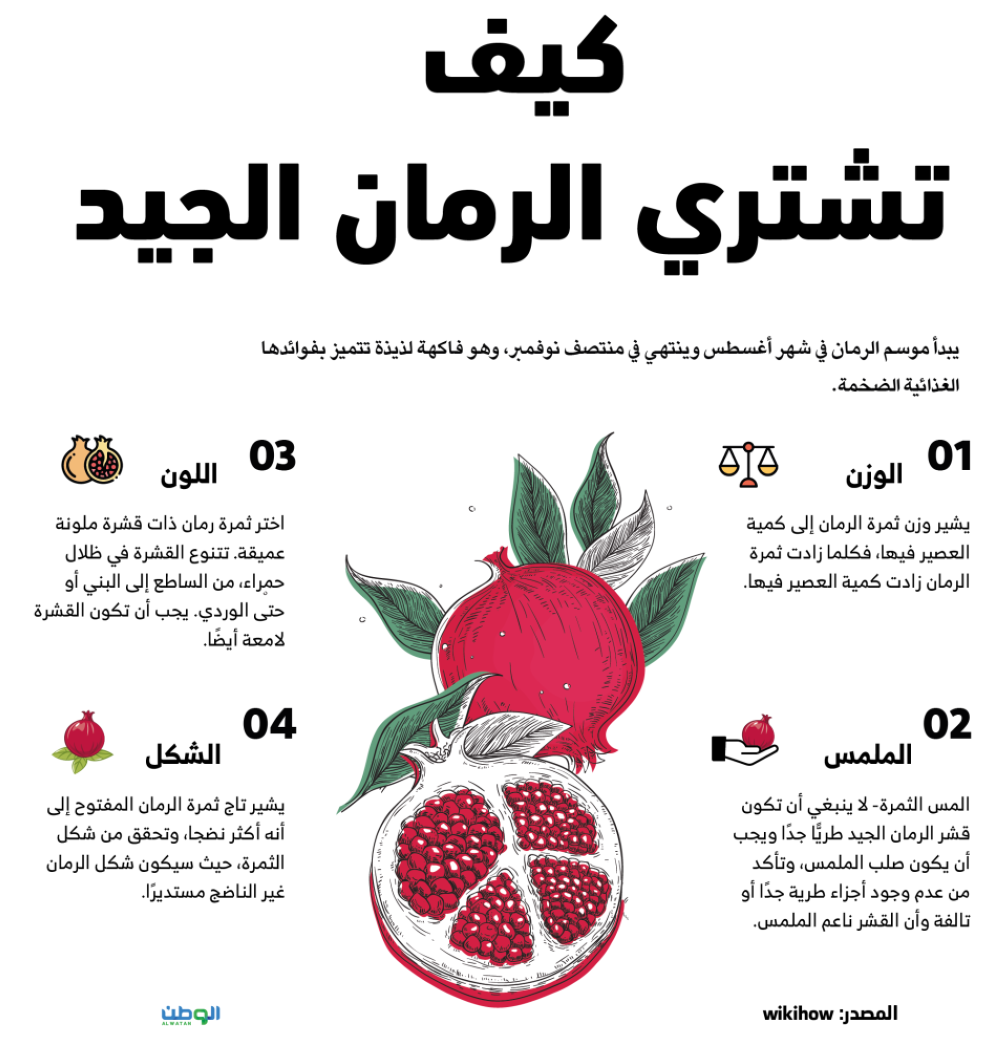 اختر ثمرة رمان ذات قشرة ملونة عميقة. تتنوع القشرة في ظلال حمراء، من الساطع إلى البني أو حتى الوردي. يجب أن تكون القشرة لامعة أيضًا.