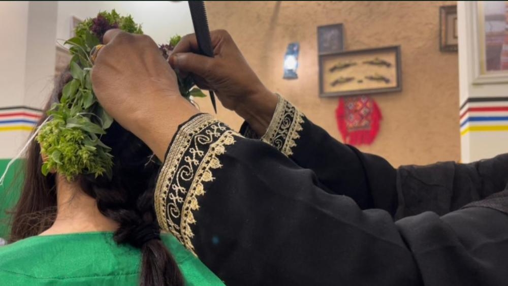 ـ تسريحة تزين شعر المرأة الجنوبية في المملكة.