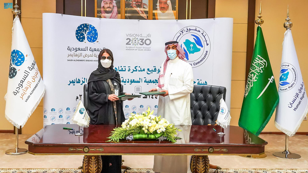 وقعت هيئة حقوق الإنسان والجمعية السعودية الخيرية لمرض ألزهايمر في مقر الهيئة بالرياض، مذكرة تفاهم بهدف تعزيز حقوق مرضى ألزهايمر المكفولة وفقًا للأنظمة الوطنية والاتفاقيات الدولية ذات الصلة التي انضمت إليها المملكة.