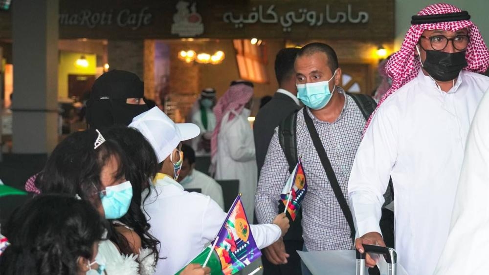 وشهدت صالتا الوصول والمغادرة توزيع الطلاب والطالبات للورود والهدايا التذكارية الخاصة والأعلام والشعارات الوطنية على أكثر من 950 مسافراً ومسافرة على الرحلات الداخلية.