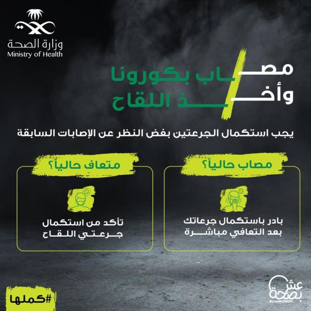 وكانت الصحة قد نشرت أنفوجرافيك عبر صفحتها في "تويتر" بعنوان «الدخول الآمن للأماكن العامة»، يؤكد ضرورة تفعيل تطبيق «توكلنا»، والتباعد، وتحديد عدد الزوار في كل منشأة، مع التأكد من لبس الكمامة، والتبليغ عند وجود مخالفات، والحرص على قياس درجة الحرارة، مشددة على ضرورة التعاون وعدم التهاون في تطبيق الاحترازات.