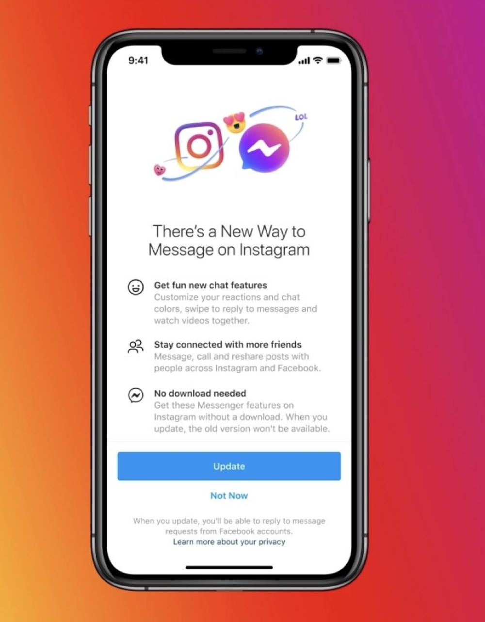وتهدف Facebook لتحسين تجربة الدمج أكثر وأكثر مع التحديث الجديد. حيث أصبح بإمكان المستخدم وبمنتهى السهولة أن ينشئ مجموعات دردشة تضم جهات الاتصال الخاصة به سواء كانت عبر Messenger أو Instagram.