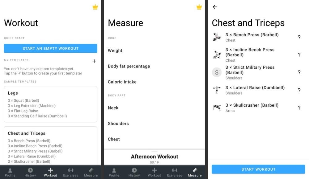 يهدف Fitbod، لنظام iOS فقط، إلى أن يكون مدربًا أكثر من مجرد سجل. لبناء تمرينك المخصص، تقوم خوارزمية التدريب الخاصة بـ Fitbod بتقييم قدرتك على تدريب القوة، ودراسة التدريبات السابقة، والتكيف مع معدات الصالة الرياضية المتاحة لديك. سيقترح Fitbod تمرينًا لليوم، مع المجموعات المقترحة، والأوزان بناءً على مخطط رفع الأثقال الشهير A. S. Prilepin. من السهل تبادل التمارين التي تستهدف نفس العضلات، ويمكنك تخصيص كل تمرين بحرية. يأتي Fitbod بمكتبة كبيرة من التمارين التي تتضمن أوصافًا ومقاطع فيديو بالشكل المناسب.