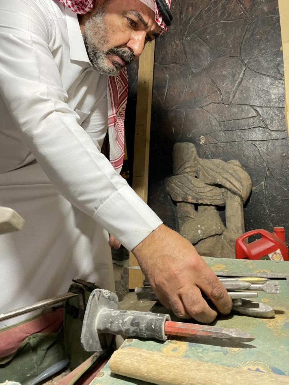 - أقام ورشة في نادي الجوف الأدبي للنحت