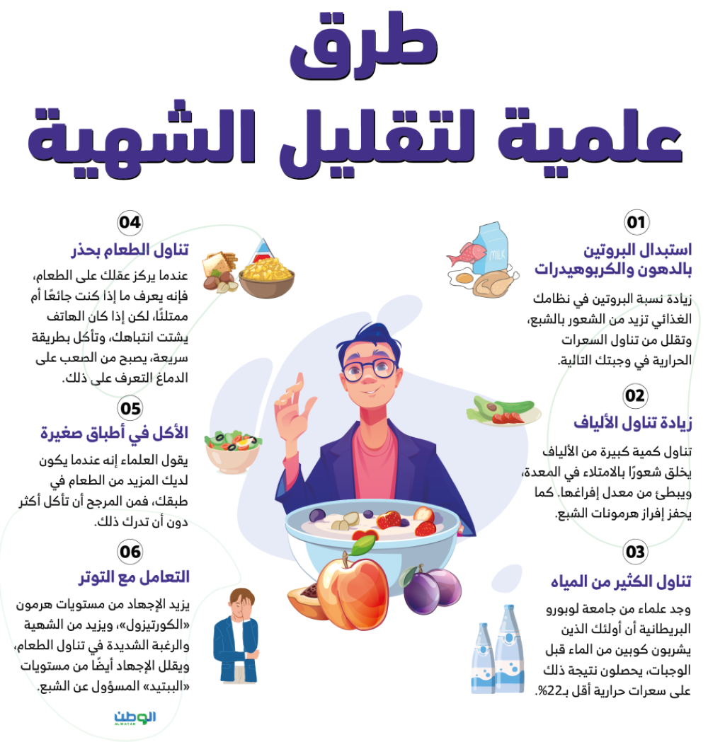 زيادة نسبة البروتين في نظامك الغذائي يزيد من الشعور بالشبع، ويقلل من تناول السعرات الحرارية في وجبتك التالية.