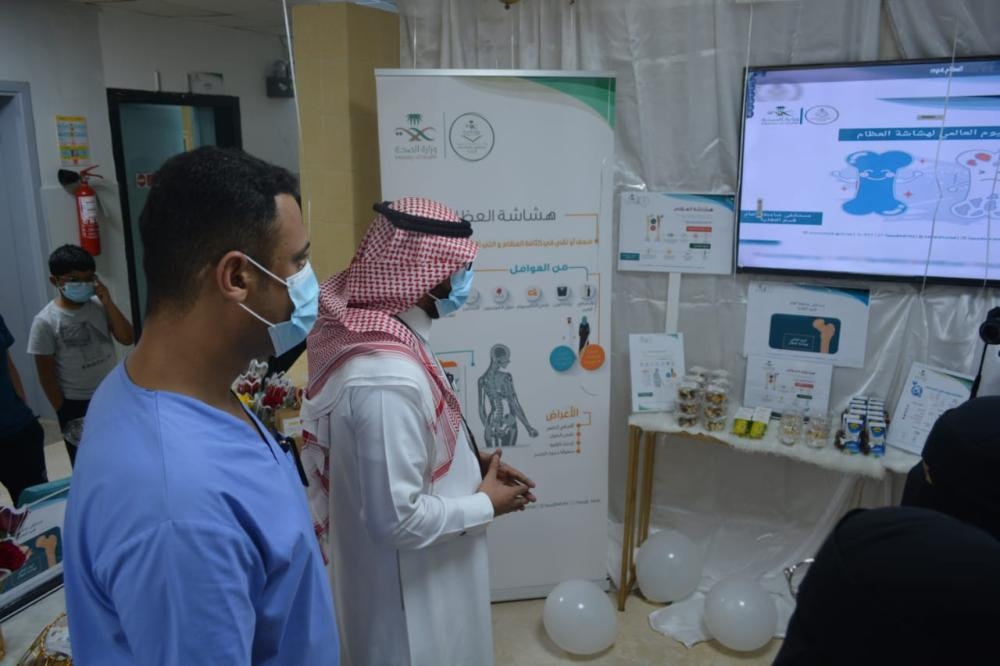 وأوضحت مسؤولة التغذية العلاجية خلود مدخلي، أن الهدف من هذه الفعاليات، هو رفع مستوى وعي المجتمع بأهمية الفواكه والخضراوات، في تغذية الإنسان والمحافظة على صحته ومناعته، وتحقيق الأمن الغذائي له، والحث على تناولها باستمرار وفق الاحتياجات الغذائية اليومية فيما أكدت الأخصائية إيمان صميلي، أن هناك أسبابا عدة للوقاية من هشاشة العظام، كاتباع نظام غذائي صحي متوازن، والحرص على تناول الكالسيوم وفيتامين «د»، حيث تستهلك المرأة بعد انقطاع الطمث 800 وحدة دولية من فيتامين «د» في اليوم الواحد، وهذه النسبة إلى جانب الكالسيوم، تقلل نسبة حدوث الكسور للمرأة في هذا العمر.