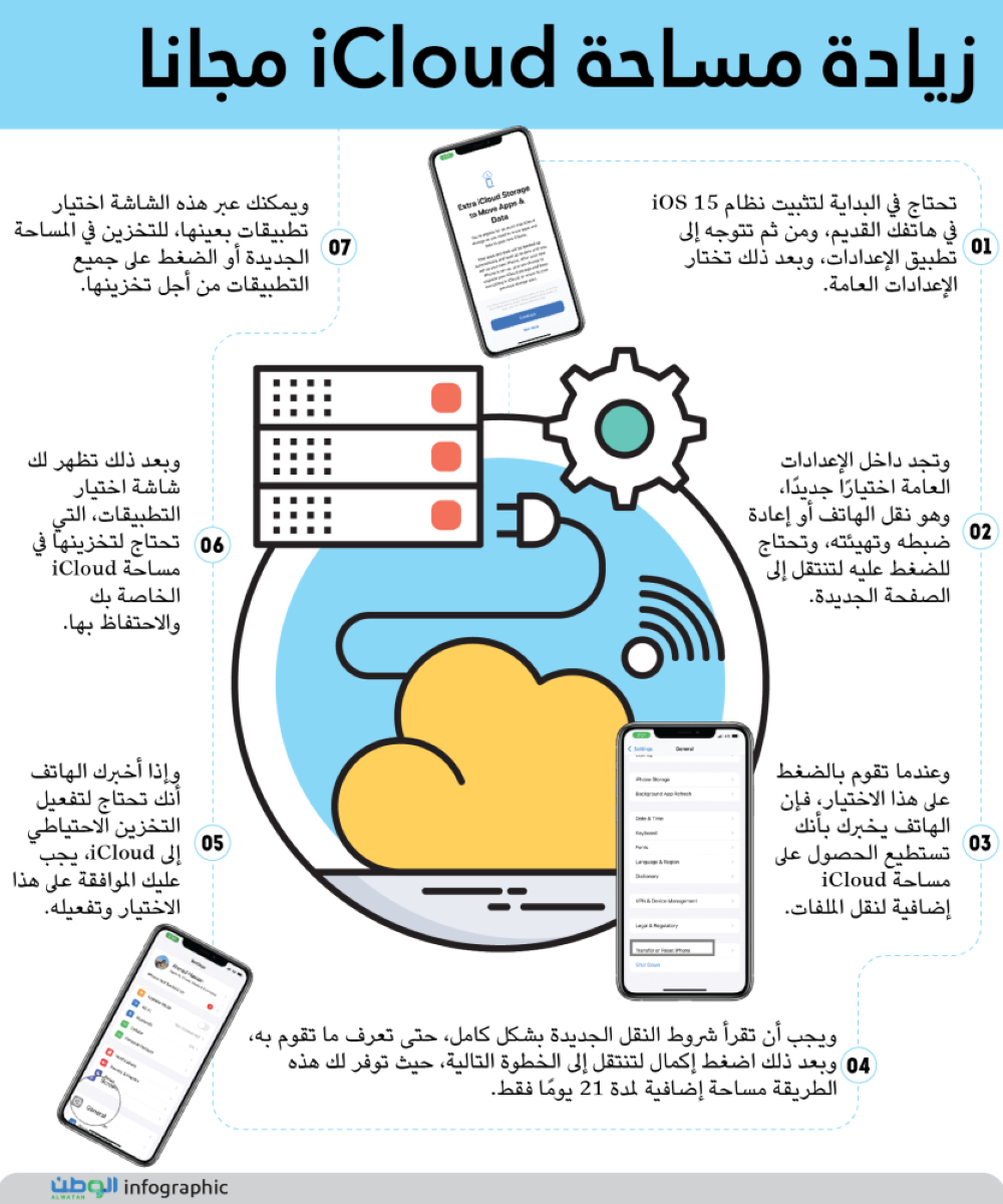 وعندما تقوم بالضغط على هذا الاختيار، فإن الهاتف يخبرك بأنك تستطيع الحصول على مساحة iCloud إضافية لنقل الملفات.
